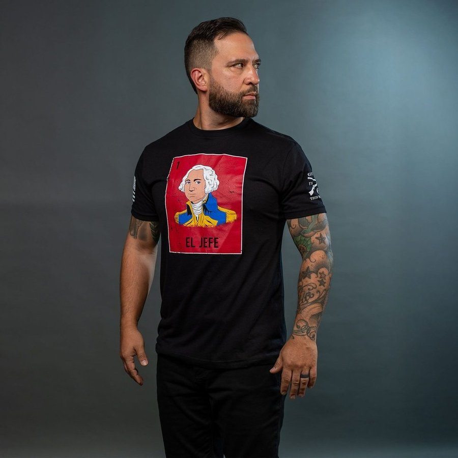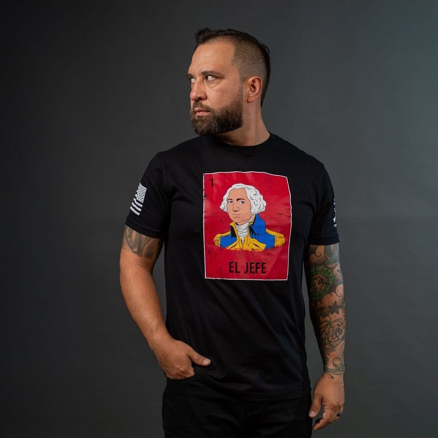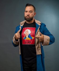 The “El Jefe” T-Shirt in Black blends the boldness of George Washington with the vibrant energy of LoterĂa, all with a Grunt Style twist. This shirt celebrates leadership, power, and cultural pride, drawing inspiration from both American history and traditional LoterĂa imagery.Â