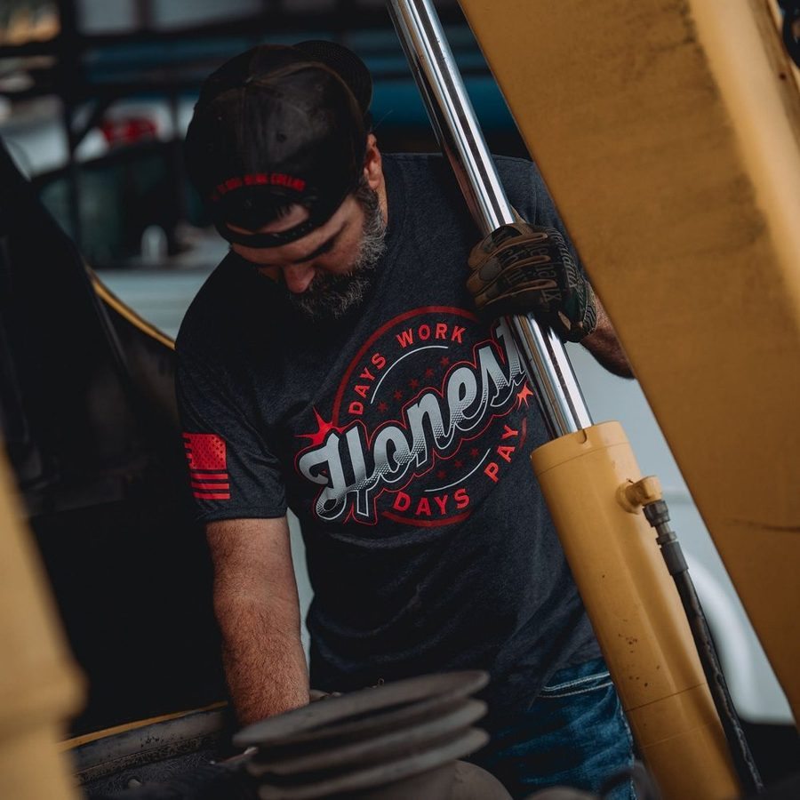 No shortcuts. No excuses. Just real work done by real people who don’t need a pat on the back to get the job done. The Honest T-Shirt in Charcoal is a salute to the grinders, the builders, and the blue-collar backbone of America.