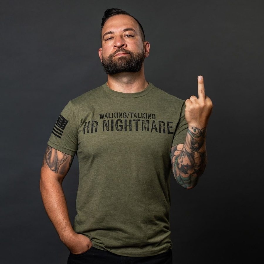 The HR Nightmare T-Shirt in Military Green is for those who know how to shake things up and keep everyone on their toes. This shirt is made for the bold, the rebellious, and the ones who might just be the reason HR has a few extra coffee breaks. This Grunt Style Tee was made for your inner HR nightmare. (We Dare You – wear it to work!) Wear it loud, wear it proud—because you’re the Walking, Talking, HR nightmare they’ll never forget!