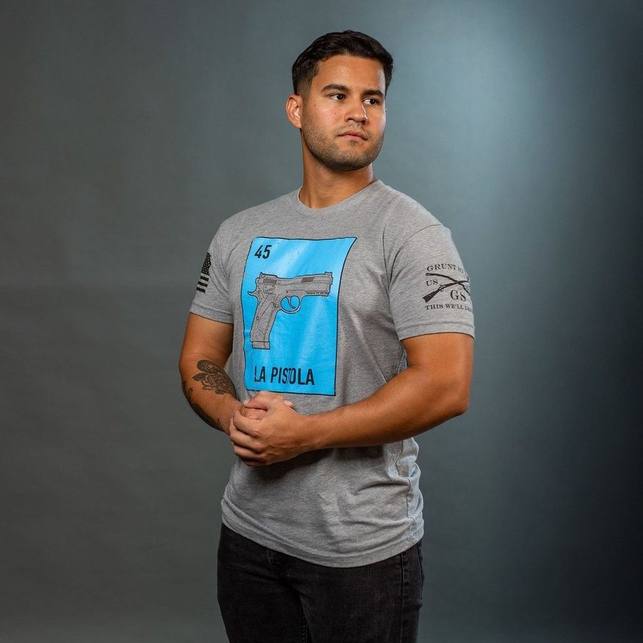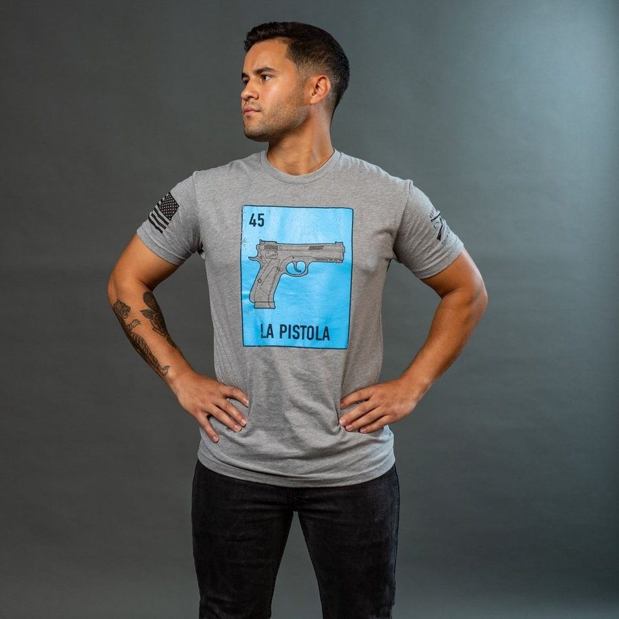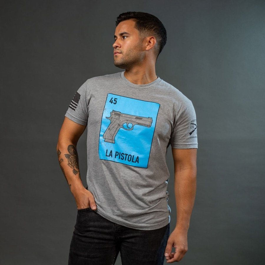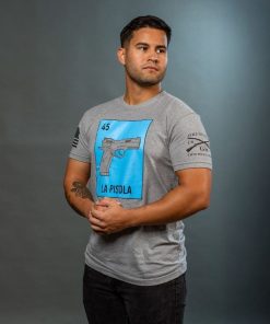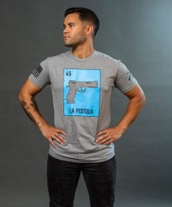 Show your pride for the Second Amendment with a dash of humor in our La Pistola T-Shirt in Dark Heather Gray. This LoterĂa-inspired design combines classic humor with a strong patriotic message, making it a bold statement for any proud American. Featuring a unique graphic of “La Pistola,” (The Gun) this shirt celebrates the right to bear arms with style, perfect for those who appreciate both culture and freedom.