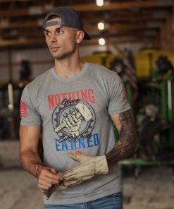 The Nothing Given T-Shirt in Dark Heather Gray is for the hardworking, calloused-hand, blue-collar Americans who know that every inch of progress comes from grit, sweat, and sheer determination. No handouts. No shortcuts. Just pure work ethic and a relentless drive to get the job done.
