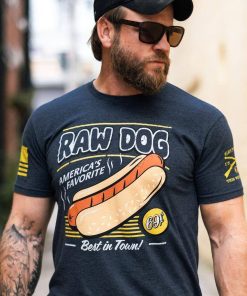 Celebrate the raw, wild spirit of America with the Raw Dog T-shirt in midnight navy. Made with quality materials, this shirt will be your new favorite, perfect for any occasion. Join the family barbecue and show your love for the untamed side of things with Raw Dog!
