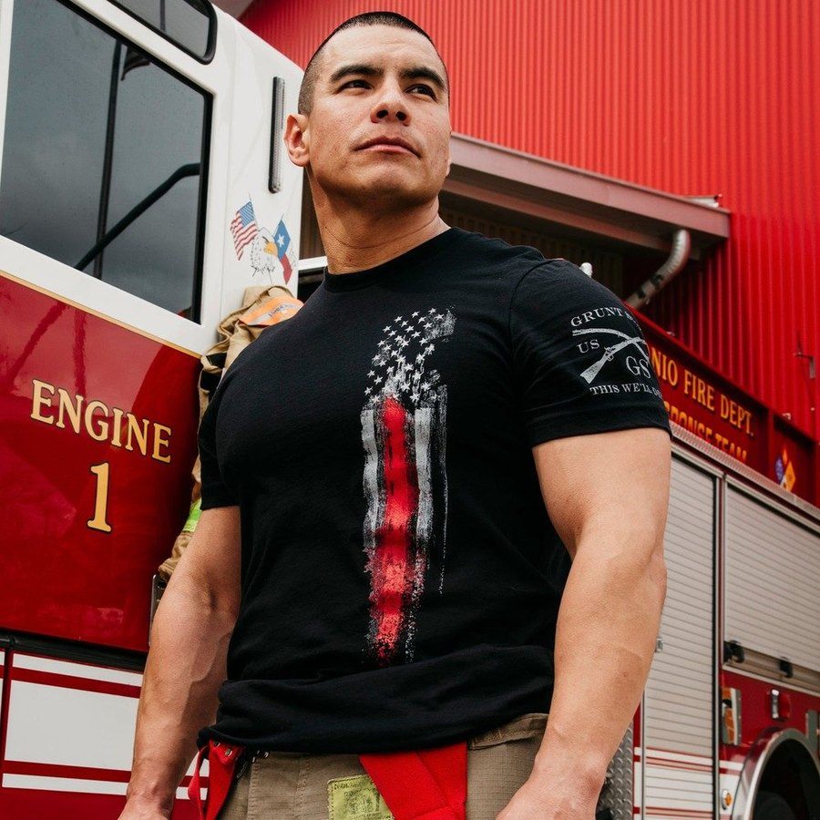 It’s the middle of the night, you smell smoke, it’s getting warmer…fire, but then you see them…the Thin Red Line…they’ve braved the flames for you. What better way to show your support of the firefighters who put their life on the line. Show your support or pride and pick up your Red Line Shirt today!