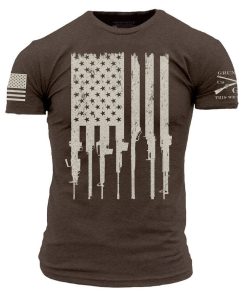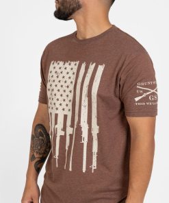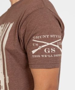 Our Rifle Flag T-Shirts in Heather Brown are crafted with the following details:
