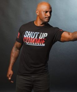 Rise up against communism with our Shut Up Commie T-Shirt in black! This bold and patriotic graphic tee is perfect for the risk-takers and freedom fighters. Show off your loud and proud stance against communism. Limited quantities available, so get yours now!