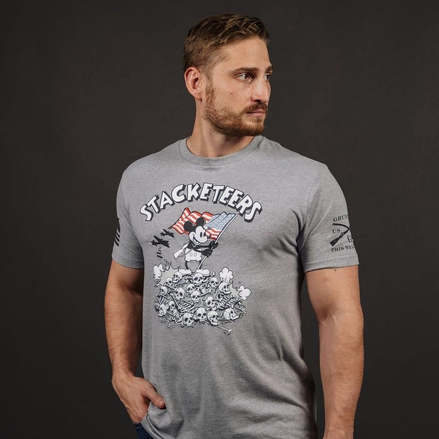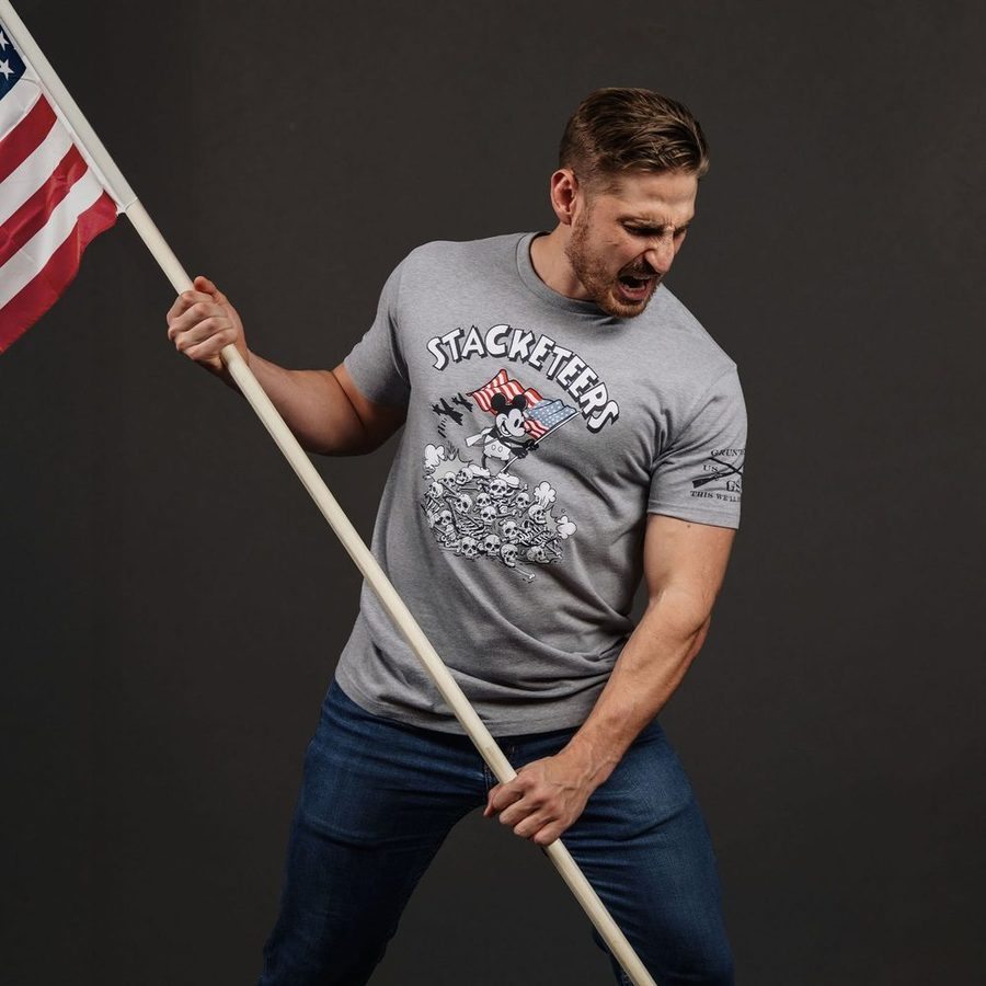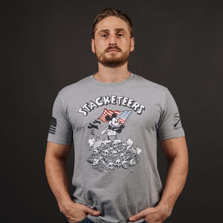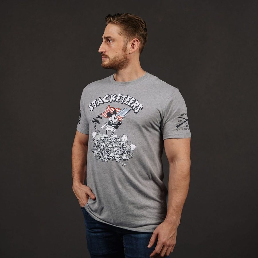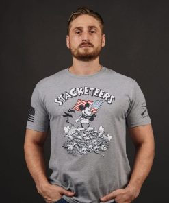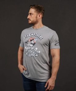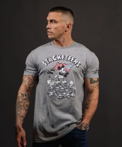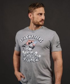 The Stacketeers T-Shirt in Dark Heather Gray takes your Saturday morning nostalgia and jacks it up with freedom, firepower, and zero apologies. This parody throws the gloves off and stacks the bodies high—just the way we like it. It’s funny, it’s fearless, and it’s rocking that dark humor with a big ol’ American grin.