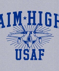 Our USAF – Aim High U.S.A.F. Tees are crafted with the following details:
