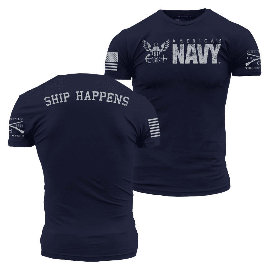 When ship hits the fan, keep it cool with this Ship Happens 2.0 graphic tee. Grunt Style is proud to offer Officially Licensed USN gear. Show your support for America’s Navy or take pride if you’ve been forged by the sea with this USN graphic tee! Order yours today!