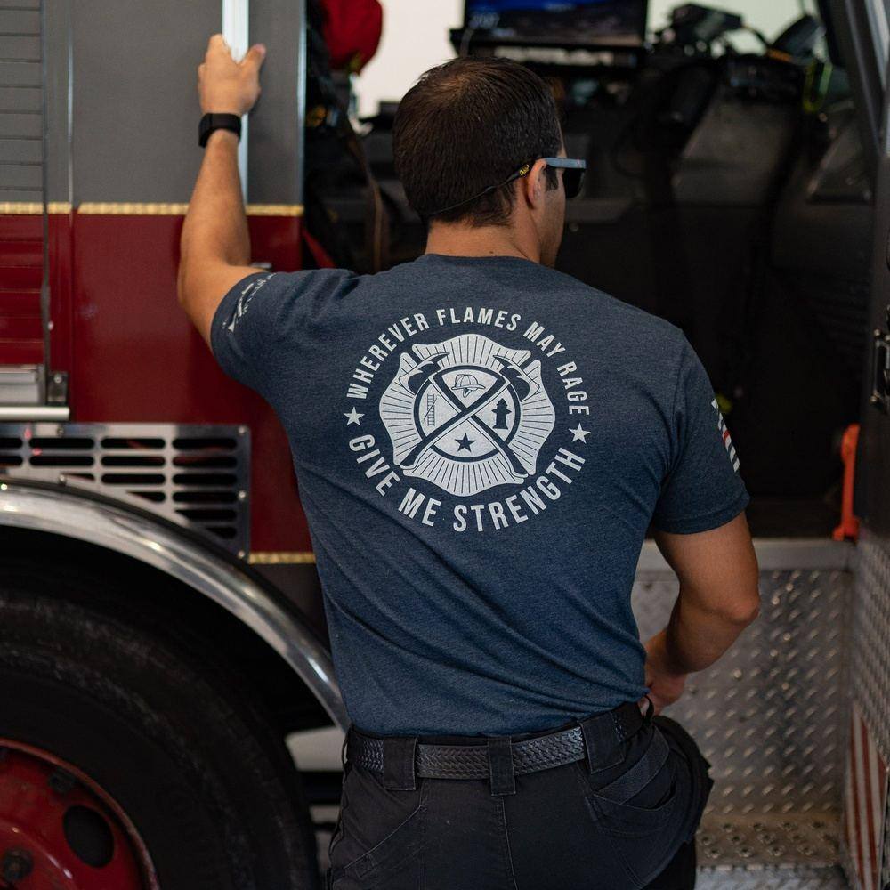 True strength lies within. Check out this “Wherever Flames May Rage” tee, that features a proud redline flag so that you can show your support for our firefighters. Order your t-shirt today.