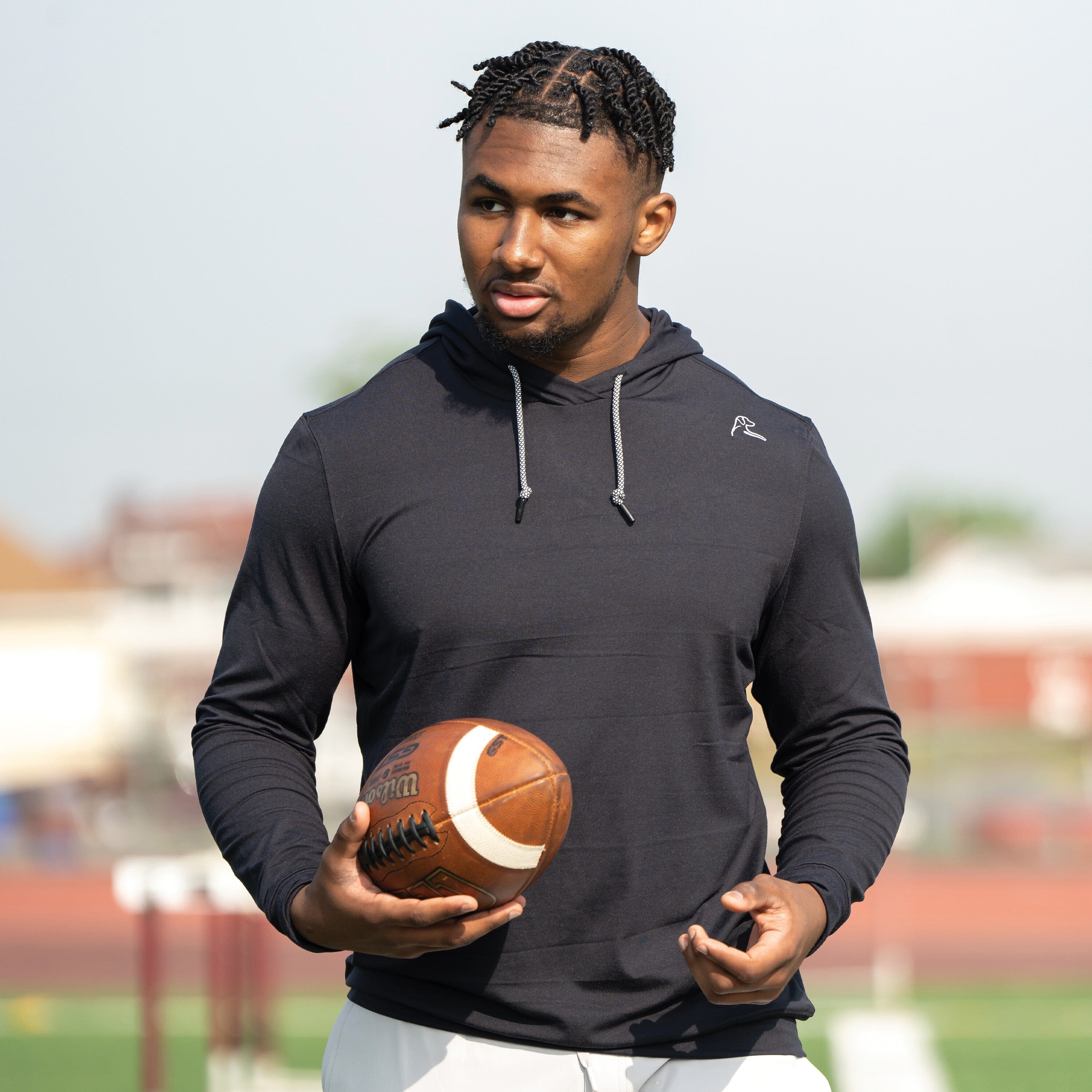 Featuring our signature VSoft⢠fabric, the Hesi Performance Hoodie is designed for comfort and built for activity. The four-way stretch technology makes it easy to move in, while the moisture-wicking and breathable fabric is meant to fit your active lifestyle. Made with incredibly soft fabric and a modern comfort fit, it easily transitions throughout the day. Finished with an embroidered dog logo on the left shoulder and a grosgrain Rhoback Ridge on the hood, this hoodie pairs great with the Delta Performance Jogger and Grit Gym Shorts.Â